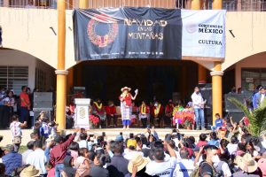 Alejandra Frausto, secretaria de Cultura Federal, expresó el saludo del Presidente Andrés Manuel López Obrador al pueblo de Metlatónoc y Cochoapa El Grande, además de refrendar el compromiso del Gobierno de México con acciones como la jornada “Navidad en las montañas” que enmarcan una serie de actividades culturales, presentaciones musicales, cuenta cuentos, y teatro infantil, así como talleres de pintura y poesía.