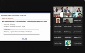 El objetivo de la reunión, fue presentar y revisar los resultados preliminares del análisis de los Indicadores de Gobernanza Migratoria (IGM), con la finalidad de validarlos, confirmarlos, adecuarlos o ampliarlos con retroalimentación de los participantes, mismos que se dividieron en seis dimensiones de la buena gobernanza migratoria.
