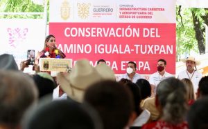Al realizar una gira de trabajo por su ciudad natal, la gobernadora, señaló que la obra pública del gobierno de la transformación es transparente y abierta; en el caso de la conservación del camino Iguala – Tuxpan se invierten 8.2 millones de pesos por parte del Estado y 3.3 millones por parte del municipio, obra que recibió el respaldo de la Asociación de Ribereños por el Desarrollo Sustentable de la Laguna de Tuxpan.