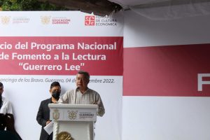 Chilpancingo, Gro. 04 de septiembre de 2022.- En representación de la gobernadora Evelyn Salgado Pineda, el Secretario de Educación en Guerrero, Marcial Rodríguez Saldaña, junto con el director general del Fondo de Cultura Económica (FCE), Paco Ignacio Taibo II, dieron el “banderazo” de arranque del programa “Guerrero Lee”, cuyo objetivo es promover la lectura en todo el estado.