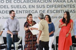 Acapulco, Gro., 09 de septiembre de 2022.- Como un acto de justicia social, la gobernadora, Evelyn Salgado Pineda, en coordinación con el Instituto Nacional de Suelo Sustentable (Insus), entregó 274 escrituras a igual número de familias, con lo que se les otorga certidumbre jurídica, seguridad sobre su patrimonio y mejores opciones de desarrollo. Esto se suma a entregas anteriores, dando un total de 2 mil 300 documentos de posesión otorgados en Guerrero.
