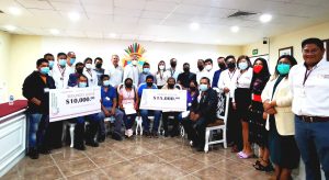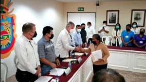 Los integrantes de los Comités ganadores, presididos por Austreberta López López y Emilio García Luna, acudieron al recinto del Ejecutivo a recibir los premios de 1ro. y 2o. lugar, respectivamente.