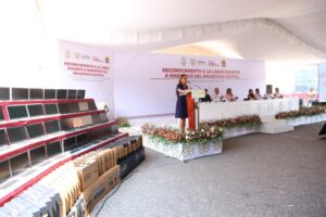 En el marco del Día de la maestra y maestro, y un acto de justicia laboral y social con el sector educativo, la mandataria estatal puntualizó que la entrega de esta herramienta de trabajo permite que lleven a cabo su labor de una manera digna y de calidad, solventando una de las necesidades tecnológicas y transformando la infraestructura física y educativa en todo el estado.