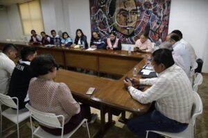 Chilpancingo, Gro., 29 de mayo del 2023.- Funcionarios del gobierno estatal establecieron un diálogo abierto y participativo con una comisión de representantes del Frente Unido de Normales Públicas del Estado de Guerrero (FUNPEG).