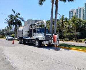 El titular de la CAPASEG indicó que con el camión hidrováctor estatal, en apoyo al municipio y a la población acapulqueña, así como a los visitantes, se efectuaron tareas de succión y desazolve en la zona Diamante; en la Avenida Las Palmas, a la altura del campo de golf, en la calle Cortijo del Bulevar de las Naciones, donde también se atendió la calle Copacabana, donde se ubica un acceso a las oficinas del Poder Judicial.