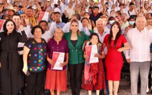 Chilpancingo Gro., 26 de junio del 2023. – La gobernadora Evelyn Salgado Pineda realizó la primera entrega de títulos de propiedad de trámite gratuito a 247 familias beneficiadas de diversas regiones de la entidad con el Programa de Regularización de la Tenencia de la Tierra, en un acto de justicia social a fin de mejorar la calidad de vida y bienestar de las familias.