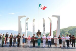 Acapulco, Gro., 13 de julio de 2023.- “El gobierno del estado nunca dará la espalda ni abandonará la convicción de seguir trabajando arduamente, como lo hacemos todos los días, por la seguridad, por el bienestar, y por el desarrollo de las y los guerrerenses”, indicó la gobernadora Evelyn Salgado Pineda, durante la inauguración del Monumento Bicentenario en la Novena Región Militar en Acapulco.