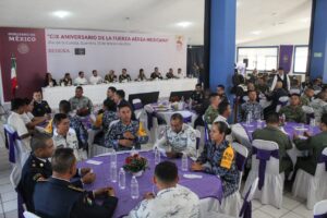 El evento, en el que se destacó la labor de la Fuerza Aérea durante la pandemia por COVID-19 y en la atención a los estragos generados por el huracán Otis, fue encabezado por el comandante de la Novena Región Militar, Enrique Martínez López, y el comandante de la Base Aérea Militar, Edmundo Martín Pérez Ramos.