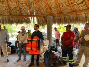 Acapulco, Gro., 09 de febrero de 2024.- Con el objetivo de atender las necesidades del personal del Parque Papagayo del puerto de Acapulco, el secretario de Bienestar, Pablo Gordillo Olivares, entregó equipo de trabajo para el desarrollo óptimo de las actividades laborales que se realizan dentro del denominado pulmón verdel puerto, en beneficio miles de visitantes que acuden de manera diaria al parque recreativo.