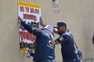 El recorrido fue encabezado por el titular de la SGIRPCGRO, Roberto Arroyo Matus, y el subsecretario de Prevención y Reducción de Riesgos, Ricardo Ramírez Ibarra, quienes participaron en la colocación de lonas y en la pinta de calcas con la leyenda de precaución, con el propósito de alertar a la población sobre el riesgo que existe al habitar en dicho fraccionamiento, que resultó afectado por el sismo del pasado 07 de septiembre del 2021.