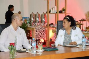 Acapulco, Gro., 08 de febrero 2024.- En representación de la gobernadora Evelyn Salgado Pineda, la secretaria de Salud, Aidé Ibarez Castro se reunió con el presidente de la Federación Mexicana de Colegios de Especialistas en Cirugía General y Asociación Mexicana de Cirugía General, Marco Antonio Loera Torres.