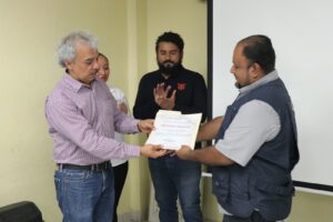 Asistieron el Director de Sistemas de Información de Riesgos, Tomás Eduardo Serrano Jiménez y la jefa del departamento de Fenómenos Antrópicos, Lizeth Alejandra Helguera Peralta.