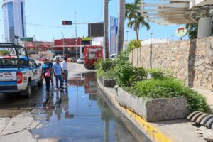 La PROPAEG informó que durante la inspección se detectó, a la altura del hotel Emporio y hotel Playa Suites, el azolve del colector sanitario, provocando el vertimiento de aguas residuales a la vía pública, salientes de dos pozos de visita del hotel Emporio.