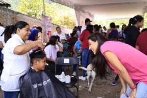 También se ofrecieron cortes de pelo, servicios de belleza, entrega de lentes para vista cansada, insumos de higiene personal y paquetes alimentarios, reafirmando el enfoque integral de esta acción.
