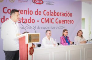 Chilpancingo, Gro., 5 de septiembre de 2024. – Al celebrar la firma del convenio de colaboración con la Cámara Mexicana de la Industria de la Construcción (CMIC) Guerrero, la gobernadora Evelyn Salgado Pineda afirmó que el combate a la corrupción en la ejecución de obras públicas y la correcta planeación del crecimiento territorial, han permitido llevar desarrollo y bienestar a través de la infraestructura a las ocho regiones del estado de Guerrero.