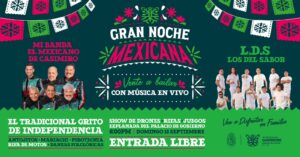 *En punto de las 6 de la tarde dará inicio la gran noche mexicana con música en vivo, verbena popular, espectáculo de drones, rifas, juegos y mucho más