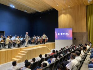 Iguala, Gro., 12 de septiembre de 2024.- Con el objetivo de acercar la cultura a los estudiantes y contribuir a su desarrollo a través de la música, se llevó a cabo el primer Concierto Didáctico de la Orquesta Filarmónica de Acapulco, dirigido a niñas, niños y jóvenes del municipio de Iguala, como parte de las acciones impulsadas por la gobernadora, Evelyn Salgado Pineda, para acercar la música a la niñez y juventud de Guerrero.