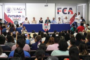 Al concluir el acto de inauguración encabezado por el rector, Javier Saldaña Almazán, en el auditorio de la Facultad de Contaduría y Administración de la UAGRO, Arroyo Matus también participó en el panel de análisis denominado: “Los Desafíos de la Gobernanza ante los Fenómenos Hidrometeorológicos”, donde compartió su análisis con la presidenta municipal de Acapulco, Avelina López Rodríguez.