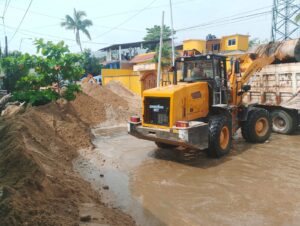 Maquinaria pesada y camiones de volteo ya se encuentran operando en las principales calles y avenidas, entre ellas las calles 1, 2, 10 y 13, para restablecer la actividad cotidiana de la población.