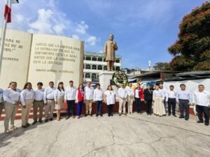 En representación de la mandataria estatal, asistió la titular de Cultura estatal, Aída Melina Martínez Rebolledo, acompañada del presidente municipal, Alberto Michi Campos llevaron a cabo la ceremonia cívica, ofrenda floral y guardia de honor.