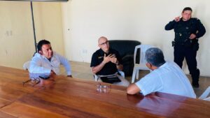 Cuajinicuilapa, Gro., 11 de noviembre del 2024. – Como parte de la estrategia de seguridad para fortalecer la paz y la gobernabilidad en Guerrero, por instrucciones de la gobernadora Evelyn Salgado Pineda, el subsecretario de Desarrollo Político y Social, Francisco García, y el secretario de Seguridad Pública, Josué Barrón, sostuvieron una reunión con el presidente municipal de Cuajinicuilapa, Hildeberto Salinas Mariche.