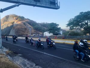 Como parte de las acciones de atención ciudadana y vigilancia en puntos carreteros durante estas fechas decembrinas, personal de la Policía Estatal brinda apoyo a las y los integrantes que integran la ‘Peregrinación en Motocicleta’, procedentes del municipio de Chilapa de Álvarez con dirección a la Ciudad de México. Los elementos mantienen esta acción en distintos tramos sobre la Autopista del Sol hasta la caseta de Paso Morelos. En dicha peregrinación participan 70 personas, a bordo de 36 motocicletas y cuatro vehículos.