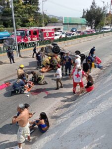 Personal operativo de la Secretaría de Gestión Integral de Riesgos y Protección Civil, atiende un accidente vehicular que se registró en los carriles centrales del bulevar Vicente Guerrero, al norte de Chilpancingo, cerca de la colonia López Portillo.