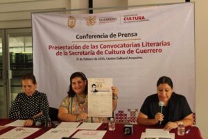 En conferencia de prensa, realizada en el Centro Cultural Acapulco, Martínez Rebolledo, presentó las convocatorias que incluyen premios estatales y nacionales, mismas que incentivan la producción literaria en distintas categorías, además de reforzar su impacto con la publicación de las obras ganadoras en coedición con editoriales de prestigio.