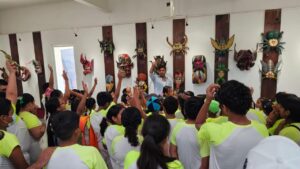 Acapulco, Gro., 20 de febrero de 2025.- Un total de 80 niñas y niños de la Escuela Primaria “Niños Héroes” del puerto de Acapulco, participaron en una “Sesión Recreativa de Pintura en piedra de río”, que impartió el maestro, José David Cruz Calixto, en las instalaciones del Museo de la Máscara.