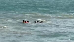 Acapulco Gro. 13 de abril del 2025. – Cuatro turistas originarios de la Ciudad de México fueron rescatados en medio del fuerte oleaje en la Playa El Morro de este destino turístico, gracias a la oportuna intervención del equipo de salvavidas, como parte del Operativo Semana Santa 2025, implementado por la gobernadora Evelyn Salgado Pineda.