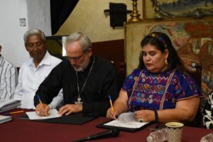 En la firma de convenio asistió el Vicario General de la Diócesis, Benito Cuenca Mayo; el Presbítero Israel García de los Santos, representante de la Dimensión para el Cuidado de los Bienes Eclesiásticos y Arte Sacro; el doctor David Morales Mojica, apoderado legal de la Diócesis; la Directora de Administración y Finanzas de la Secretaría de Cultura, Celia Ramírez Martínez y la Directora del Museo de Arte Virreinal, Clara Elena Ávila González.