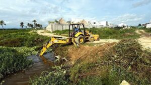 En Acapulco, la Comisión de Agua Potable, Alcantarillado y Saneamiento del Estado de Guerrero realizó el retiro del taponamiento del canal natural de la colonia Robles Catalán, con lo que se da apertura al canal para el desfogue del agua a fin de reducir el riesgo de inundación.