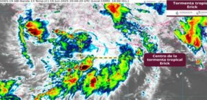 Indicó que Erick aún representa riesgos importantes para la población, ya que se pronostican lluvias muy fuertes a torrenciales en diversas regiones de Guerrero y Oaxaca, así como vientos intensos y alto oleaje en las costas, lo que puede ocasionar inundaciones, deslaves y daños en caminos o viviendas, especialmente en zonas vulnerables.