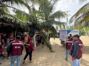 Como parte de las acciones implementadas por la gobernadora Evelyn Salgado Pineda de apoyar a las familias damnificadas de la región de la Costa Chica, la titular de la SDUOPOT, Irene Jiménez Montiel, su equipo de trabajo y el presidente municipal de Marquelia, Javier Tacuba Salas, recorrieron la zona afectada de playa en La Bocana, donde se realizaron los trabajos de limpieza y apertura en accesos. Asimismo, se hizo entrega de despensas y enseres de primera necesidad a los habitantes afectados tras el paso del huracán Erick.