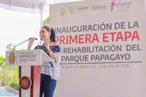 “Este día el Parque Papagayo va recuperando también esta belleza, su dignidad y con él, por supuesto se renueva la confianza que se puede tener un Acapulco verde, vibrante, ordenado, bello, así también como un futuro donde el bienestar no sea un privilegio de unos cuantos, sino un derecho para todas y para todos”, puntualizó.