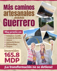 “Por primera vez, y gracias al apoyo del Gobierno de México, la Sierra de Guerrero tendrá caminos artesanales que acercarán el futuro, la esperanza y el bienestar a quienes durante años fueron olvidados. No solo construiremos rutas, también abriremos paso a los sueños de cientos de familias que han creído en un mejor mañana para sus comunidades”, indicó la mandataria guerrerense.