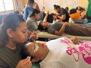 Asimismo, el curso de canva (plataforma digital para hacer diseño gráfico), computación básica manicure y pedicure, aplicación de extensiones de pestañas principiantes, artesanías con pastas flexibles, corte y confección de prendas para caballero, manejo de hoja de cálculo Excel y trenzas africanas con kanecalon.