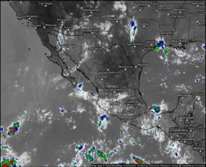 Estas condiciones serán favorecidas por un Canal de Baja Presión que se extienden al norte del estado y por la Onda Tropical Número 23 que favorece el ingreso de Aire Marítimo Tropical, lo que ocasionará el desarrollo de nubes de tormenta.
