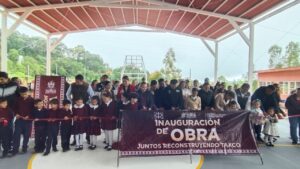 La jornada comenzó en la Secundaria Técnica Tlachco, en el barrio de la Panorámica, con la entrega de un auditorio escolar que servirá para actividades académicas, culturales y deportivas.