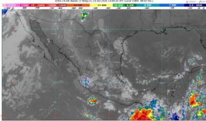 La dependencia agregó que se mantiene en vigilancia a un sistema de baja presión que esta mañana se localizó frente a las costas de Chiapas, aproximadamente a 900 kilómetros al sureste de Acapulco, ya que presenta 50 por ciento de probabilidad para desarrollo ciclónico en 7 días.