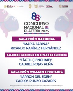 Por último, la secretaria de Cultura, Aída Melina Martínez Rebolledo, mencionó que la premiación de las diferentes categorías se realizará en el marco de la inauguración de la “88 Feria Nacional de la Plata”, que se llevará a cabo el próximo sábado 29 de noviembre de 2025, en la Plaza Borda de Taxco de Alarcón, Guerrero.