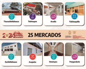 A la fecha, se han construido y rehabilitado 25 mercados en distintas zonas del estado, entre ellos los ubicados en Teloloapan, en la Región Norte; La Vacacional en Acapulco; Arcelia en Tierra Caliente; Tlacoachistlahuaca en la Costa Chica; y el Central de Xochihuehuetlán en la Montaña.