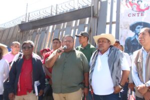 Los funcionarios acudieron al exterior del ROPEG, donde representantes del SUTCobach-Gro y sindicatos realizaron la entrega del pliego petitorio.