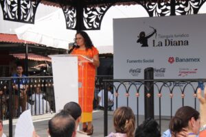 En su mensaje, destacó “Hoy podemos afirmar con orgullo que casi el 100% de estas unidades económicas ha recuperado sus inventarios, su capacidad de venta y sus ingresos y que el hoy renombrado Tianguis Turístico La Diana, es un espacio de trabajo de las y los locatarios que preservan nuestras tradiciones”.