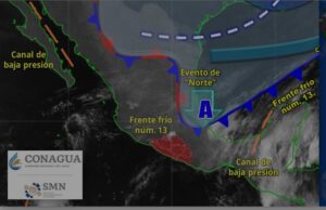 Por otro lado, agregó, se prevé que el Frente Frío Número 13, que presenta condiciones de oclusión al norte de Guerrero, ocasione un notable descenso en las temperaturas durante esta noche y madrugada del martes.
