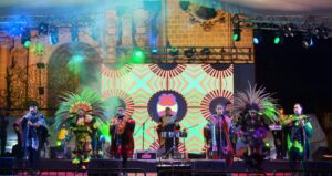 Taxco, Gro., 4 de diciembre de 2025.- En el quinto día de actividades de la “88 Feria Nacional de la Plata”, se presentó ante una Plaza Borda abarrotada la agrupación de cumbia andina mexicana “Los Askis”, quienes hicieron vibrar al público asistente con temas como “Amor regresa”, “Vienes y te vas”, “Te regalo mi corazón”, “Ay el amor”, “Cumbia Azteca”, entre otros.