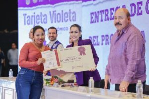 A nombre de las beneficiarias, Aracely Lozano Valente agradeció a la gobernadora por estar presente y apoyar a las mujeres. “Gracias gobernadora por no dejarnos solas y por pensar en nuestra realidad, por apoyar a las mujeres que todos los días hacemos posible para sacar adelante a nuestras familias. La Tarjeta Violeta no es sólo un apoyo para muchas de nosotros, es una ayuda que nos da tranquilidad y fuerza, nos motiva, nos empodera y nos enseña que sí podemos salir adelante y tomar el control de nuestra vida”, precisó.