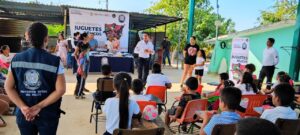 Como parte del apoyo a las escuelas, se realizó la donación de ocho chalecos, ocho gorras y un equipo de cómputo, además de la instalación de un módulo informativo con material preventivo e información sobre los números de emergencia 911 y 089, para facilitar el acceso a los servicios de atención.