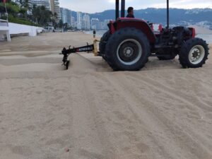 Por instrucciones de la gobernadora Evelyn Salgado Pineda, durante el periodo vacacional de invierno 2025 personal operativo de la Promotora de Playas Acapulco realiza trabajos de nivelación y oxigenación de la franja de arena en la bahía, así como barrido manual en playas y accesos, a fin de mantener estos espacios en condiciones óptimas para visitantes y residentes.