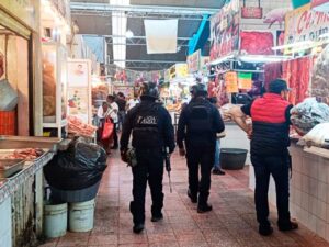 Personal de la Policía Estatal de la Secretaría de Seguridad Pública realiza recorridos preventivos en pasillos, estacionamiento y naves del Mercado Baltazar R. Leyva Mancilla de Chilpancingo, con el objetivo de inhibir conductas delictivas y brindar seguridad a comerciantes y usuarios